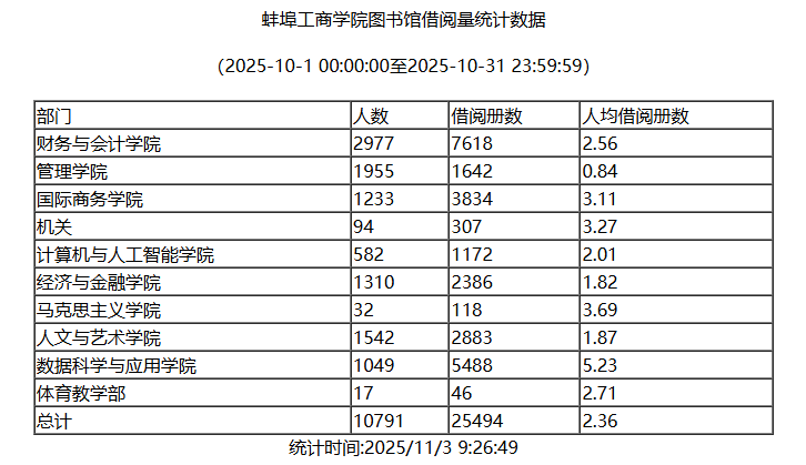 现将2025年10月借阅量排行公布如下,如需详细数据详情可点击http://10.211.14.7:8080/jytj.htm进行查询。