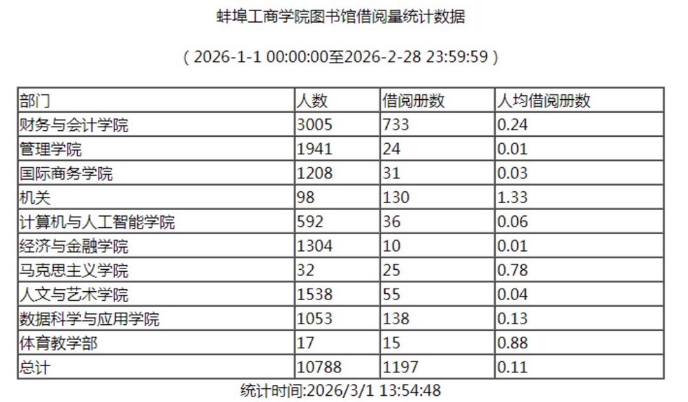 现将2026年1-2月借阅量排行公布如下,如需详细数据详情可点击http://10.211.14.7:8080/jytj.htm进行查询。