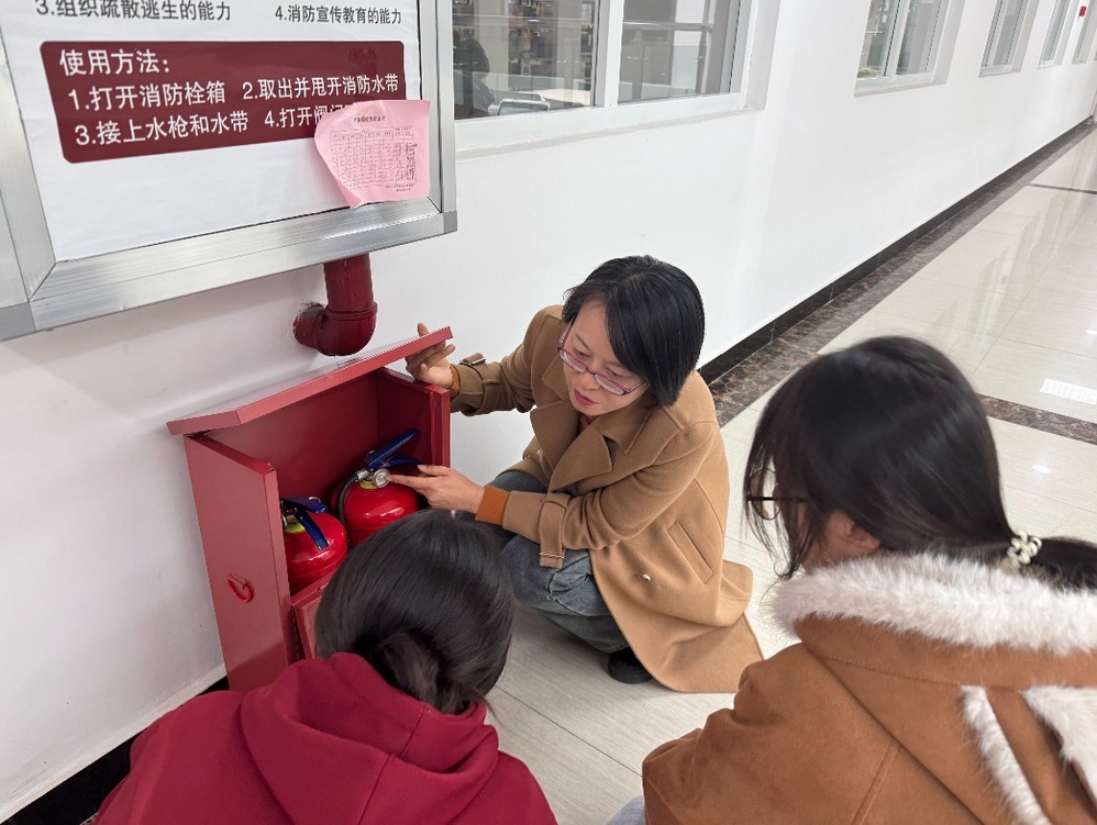 同时,检查延伸至安全出口标识完好性核验、应急疏散通道畅通性排查,针对安全出口门锁的灵活度及防护性能开展专项检测。期间,工作人员向学生细致指导日常巡查中的问题识别要点,现场讲解消防报警装置的响应机制与操作规范,反复强调“安全出口严禁遮挡封堵、消防设施必须定期巡检”的刚性要求。